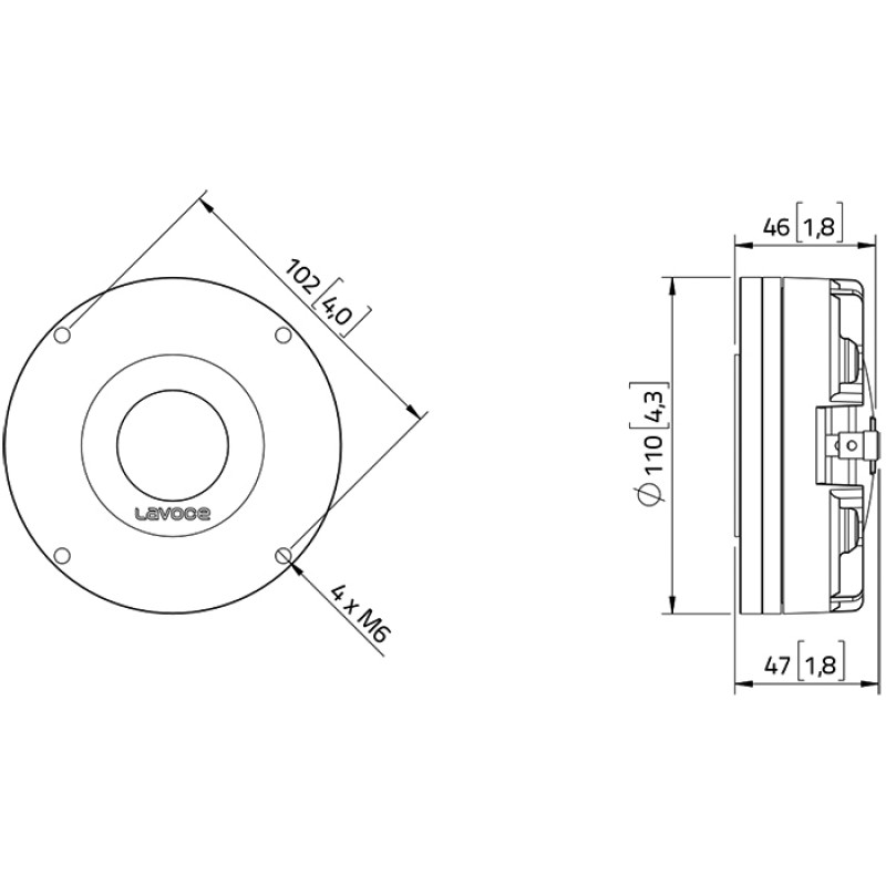 Driver Lavoce DN14.25T, 80W AES , 108 dB , 1000-18000 Hz, bobina 2.5", neodimiu